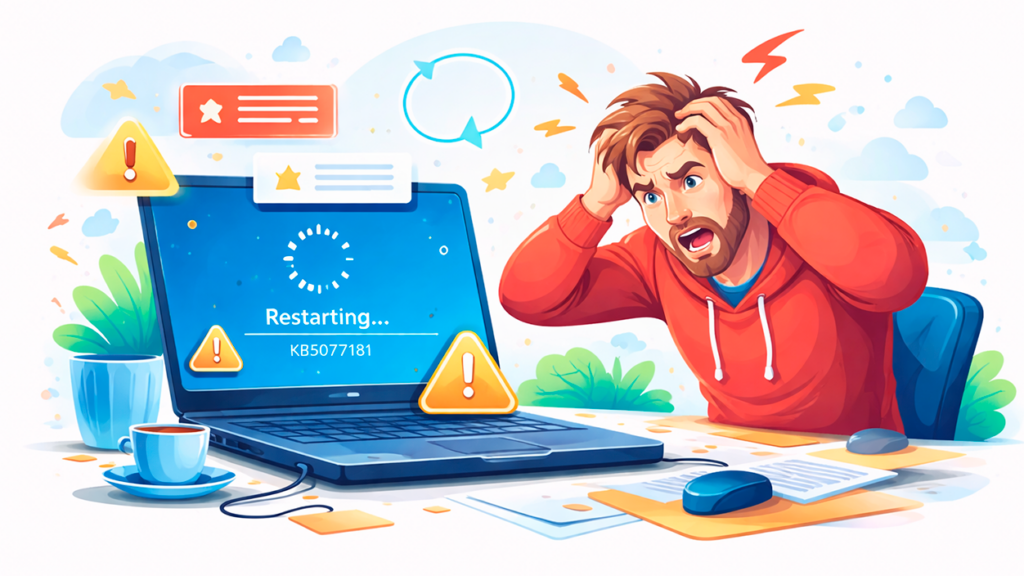 Uno de los errores más preocupantes asociados al fallo KB5077181 es el bucle de arranque. Varios usuarios describen que, tras aplicar la actualización, sus equipos entran en un ciclo de reinicios continuos durante las fases finales de la instalación o justo al cargar el escritorio, llegando a contabilizar más de 15 reinicios consecutivos antes de que aparezca algún mensaje de error.