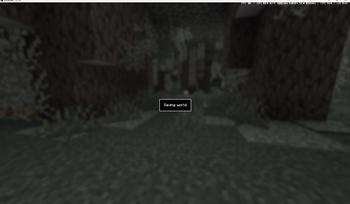 En algunos reportes de jugadores, al intentar crear un mundo nuevo, Minecraft carga el entorno, muestra «Joining world», entra aparentemente con normalidad y, al cabo de unos segundos, salta de nuevo a la pantalla de «Saving world» donde se queda atascado. Si el usuario intenta interactuar con la ventana, aparece el mensaje de que «Java no responde» o similar.